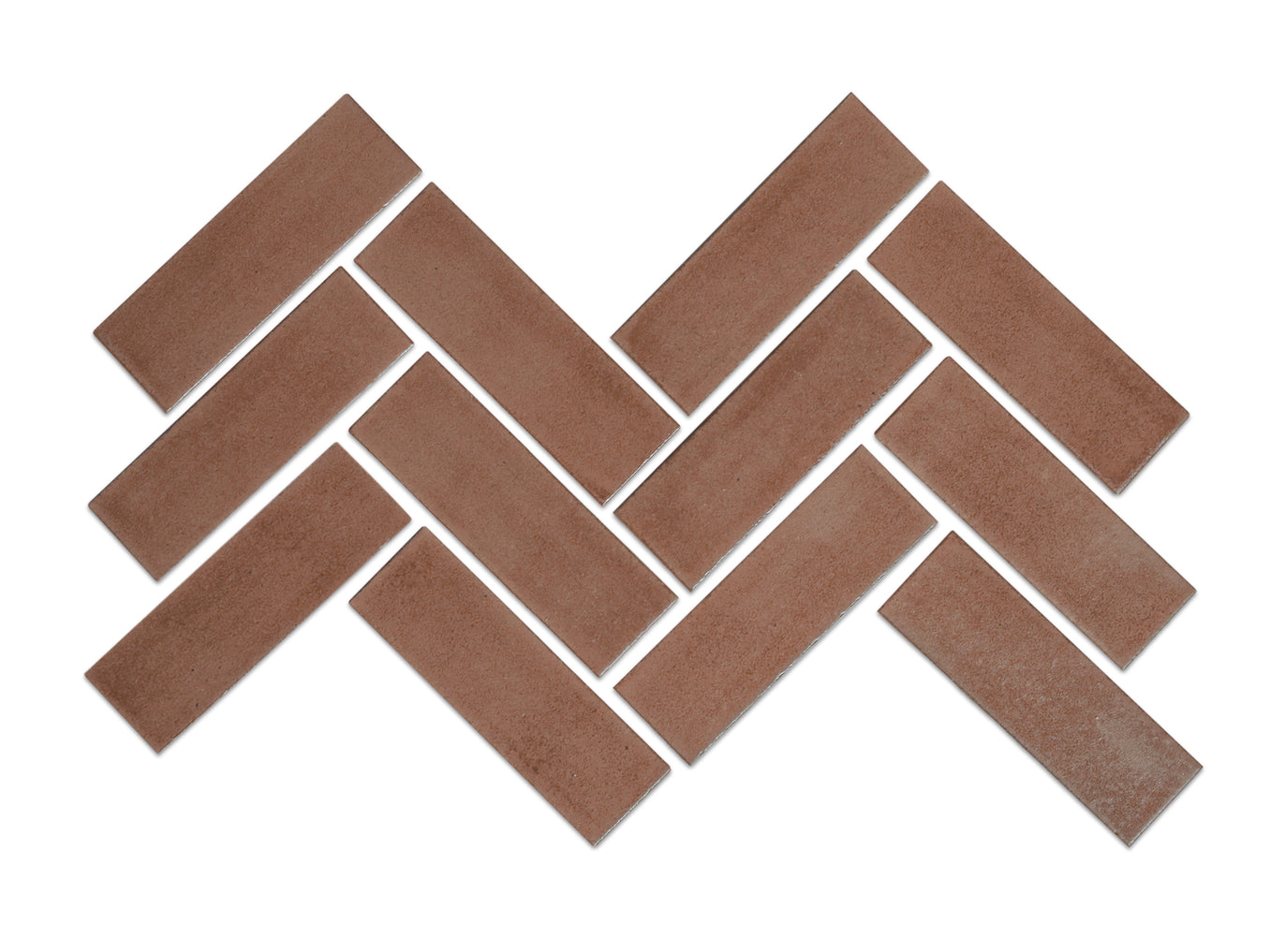 441 Mocha is a brown freckled glaze with warmer brown undertones. It has a matte finish and medium variation. Our 2"x6" ceramic herringbone tiles are a stunning and a unique twist to the classic subway tile trend. These easy to install sheets featuring our 2"x6" Subway Tiles in Herringbone Pattern are sure to add character and style to your space.