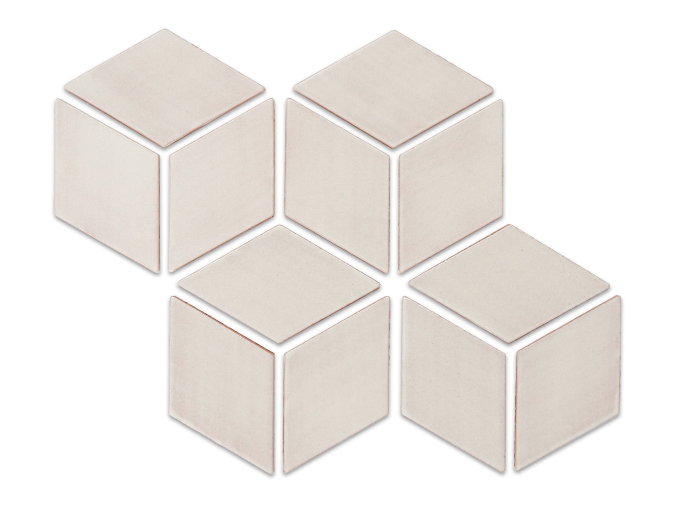Medium Cube Diamonds use repetition and subtle color shifts to create the illusion of depth across a surface. The geometric pattern adds movement and structure, while the handmade nature of each tile introduces variation that keeps the design from feeling flat or mechanical.