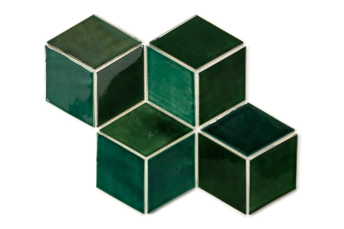 While they are most commonly used in cube formation, this diamond shaped colorful wall tile can also be arranged in argyle or chevron patterns. A vast range of colors, from neutral to the more daring, elevate the tilesā geometric forms beyond measure.